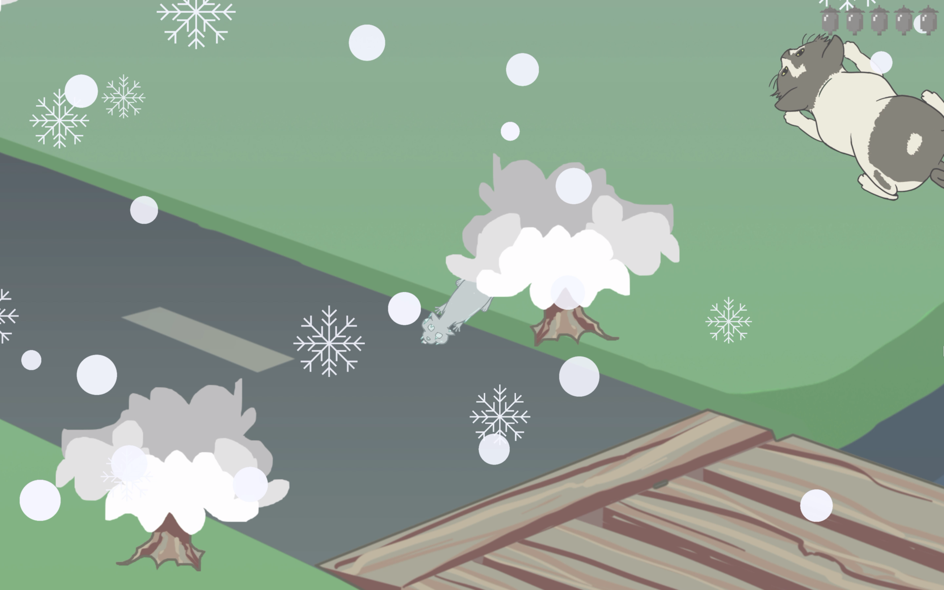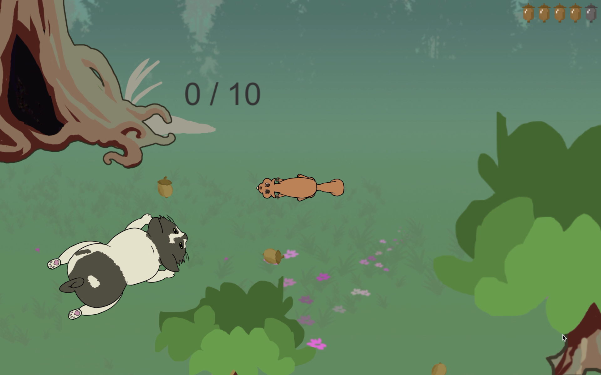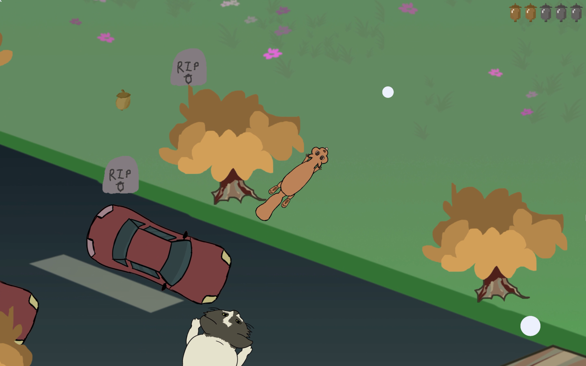 For this game I created the moving parts: the squirrel, the cat, and the car (featured in the final level).